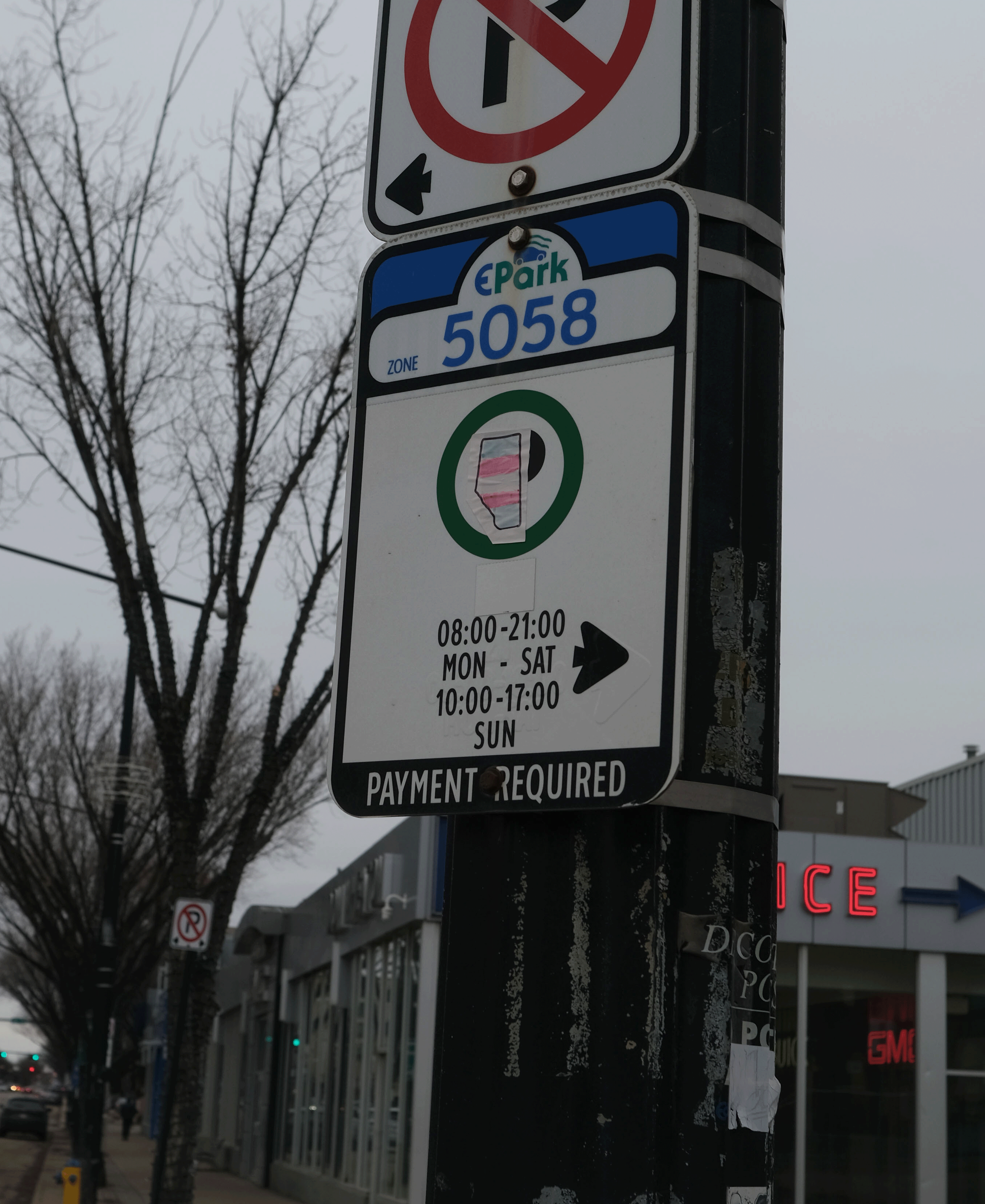 To test the flexibility of our design, we applied our guides to other signage, such as loading zone signs. These are often next to each other in busi comercial areas, such as 82 avenue. By improving the clarity of both signs, we aim to reduce confusion among the drivers and create an effective signage system.